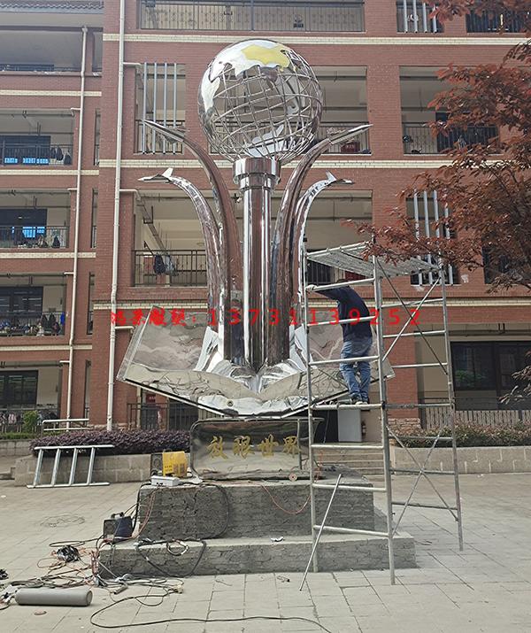 校園不銹鋼雕塑顧名思義就是為特定的院校校設(shè)計制作的雕塑作品,它能夠裝飾、豐富和美化校園環(huán)境空間,豐富師生的精神生活,是校園文化建設(shè)中的重要組成部分,同時也是也能夠體現(xiàn)出一所院校文化狀態(tài)。一所校園即使歷史再悠久,建筑再壯觀,沒有優(yōu)秀的校園雕塑作品也是不完整的,好的校園不銹鋼雕塑可以反映出整所院校的審美傾向、文化意識形態(tài)和深厚的文化氣息。校園不銹鋼雕塑是物質(zhì)化了的精神載體,它是校園文化的載體,校園雕塑作為一種精神載體,它具有文字屬性,同樣體現(xiàn)文以載道的精神。每一座校園雕塑均蘊含有一定的道德追求,能對學(xué)生產(chǎn)生巨大的道德潛化作用,激發(fā)學(xué)生對道德原則、道德規(guī)范在情緒上的認同,產(chǎn)生共鳴,同時對道德理想、道德建構(gòu)產(chǎn)生向往之情。在這樣的環(huán)境中,在這樣的文化影響下,會自然而然地激勵學(xué)生積極進取、勇于創(chuàng)新。校園不銹鋼雕塑是校園環(huán)境的重要組成部分,不僅有美化校園環(huán)境的作用,還對后人有著更深的教育意義。鴻景不銹鋼雕塑廠家為遵義習(xí)水一中制作的放眼世界不銹鋼雕塑,雕塑高度為6米,采用不銹鋼板材制作,需要校園雕塑、園林景觀不銹鋼雕塑,歡迎來電咨詢。